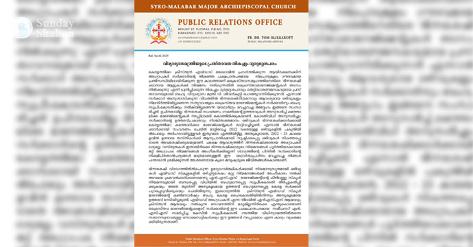 കേരളത്തിലെ ക്രിസ്ത്യന് എയ്ഡഡ് മേഖലയില് പ്രവര്ത്തിക്കുന്ന ആയിരക്കണക്കിന് അധ്യാപകര് സര്ക്കാരിന്റെ പക്ഷപാതപരമായ നിലപാടുമൂലം ഗൗരവമായ പ്രതിസന്ധി യിലായിരിക്കുന്ന ഈ കാലത്താണ് ക്രൈസ്തവ സമൂഹത്തി നെതിരെ ഇത്തരമൊരു പ്രസ്താവന നടത്തിയിരിക്കുന്നതെന്ന് സീറോമലബാര് സഭ പിആര്ഒ ഫാ. ടോം ഓലിക്കരോട്ട് പ്രസ്താവനയില് ചൂണ്ടിക്കാട്ടി.