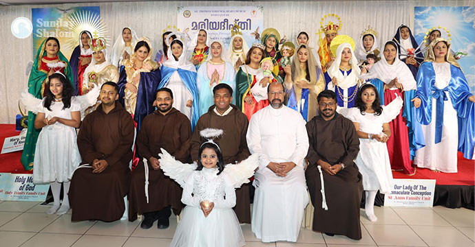 ദോഹ: പരിശുദ്ധ അമ്മയുടെ പ്രത്യക്ഷീകരണങ്ങളെയും നാമങ്ങളെയും പരിചയപ്പെടുത്തുക എന്ന ലക്ഷ്യത്തോടെ സെന്റ് തോമസ് യൂത്ത് മൂവ്മെന്റ് കുടുംബകൂട്ടായ്മകളുമായി സഹകരിച്ച് പരിശുദ്ധ അമ്മയുടെ നാമധേയങ്ങളുടെ ദൃശ്യാവിഷ്കാരമായ ‘മരിയദീപ്തി’ ഖത്തര് സെന്റ് തോമസ് സിറോ മലബാര് ദേവാലയത്തിലും അല്ഫോന്സാ ഹാളിലുമായി നടന്നു.
