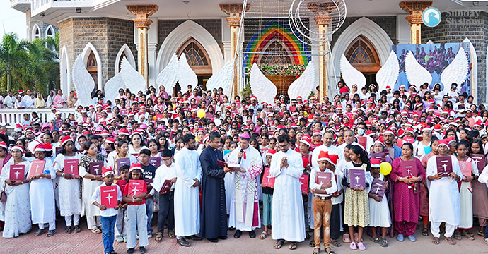 കോട്ടപ്പുറം: ബൈബിള് പകര്ത്തി എഴുതിയ രണ്ടായിരം പേരുടെ സംഗമം ശ്രദ്ധേയമായി. ഈശോമിശിഹായുടെ മനുഷ്യാവതാര ജൂബിലി 2025 ന്റെ കോട്ടപ്പുറം രൂപതാതല സമാപനത്തോടനുബന്ധിച്ചായിരുന്നു സംഗമം ഒരുക്കിയത്.