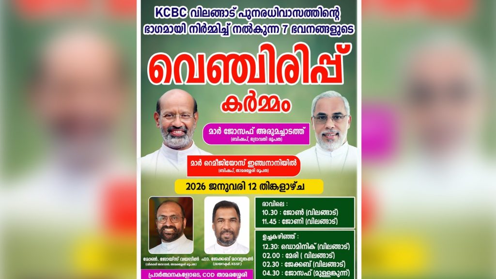 കോഴിക്കോട്: ഉരുള്പൊട്ടലില് തകര്ന്നടിഞ്ഞ വിലങ്ങാട് ദുരന്തബാധിത മേഖലയില് കേരള കത്തോലിക്ക സഭയുടെ നേതൃത്വത്തില് നടപ്പിലാക്കുന്ന സമഗ്ര പുനരധിവാസ പദ്ധതിയുടെ ഭാഗമായി ജനുവരിയില് 19 വീടുകള് കൂടി വെഞ്ചിരിക്കും. ജനുവരി 12-ന് ഏഴ് വീടുകളും, 27-ന് പതിനൊന്ന് വീടുകളും, 31-ന് ഒരു വീടുമെന്ന ക്രമത്തിലാണ് ഗൃഹപ്രവേശന ചടങ്ങുകള് സം ഘടിപ്പിക്കുന്നത്.